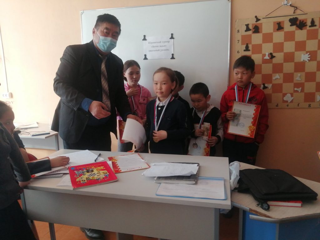 Согласно положению Всероссийского командного соревнования по шахматам «Белая ладья» среди общеобразовательных организаций Республики Тыва, 17 марта 2022 года в МБОУ «ЭСШ им С.Чакар» проведен школьный этап соревнования. В игре приняли участие: