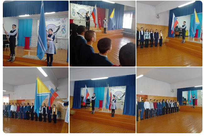 Право поднять Государственные флаги РФ и РТ было предоставлено — учащимся 9в класса Сандыкчап Кирилл,Шомбун Айлуна