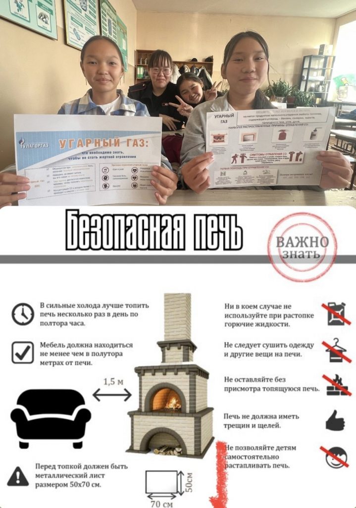 Учащиеся 7 «б» класса вместе с классным руководителем Чооду Б-Ч.А. присоединились к акции «Осторожно, угарный газ!». Чооду Б-Ч.А. объяснила детям правила эксплуатации отопительных печей, симптомами отравления угарным газом.