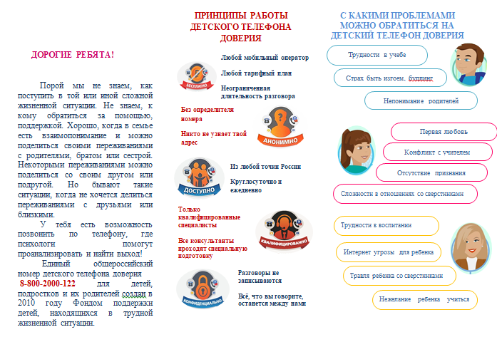 Детский телефон доверия с единым общероссийским номером (бесплатный, круглосуточный) 8-800-2000-122