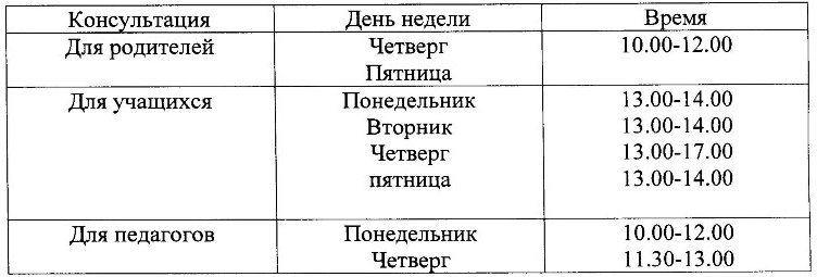 График консультаций на 2021-2022 учебный год